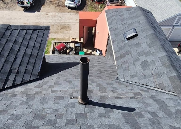 Our roof installations include: Removal of old roofing materials, Inspection of roof decking, Installation of new underlayment and ventilation, High-quality asphalt shingles designed for Ontario weather. A new roof improves home value, energy efficiency, and curb appeal.